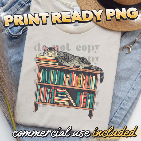 Bookshelf Cat Nap || High-Quality, Print Ready PNG